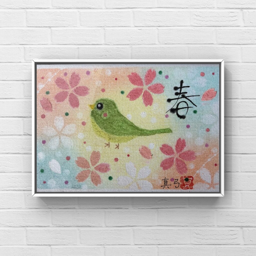 笑顔になる癒しのパステリア書『~ウグイスと桜🌸~』 にじみ文字の『インテリア書』と、優しい色合いの『パステルアート』が組み合わさった大人気のアートです!受付中